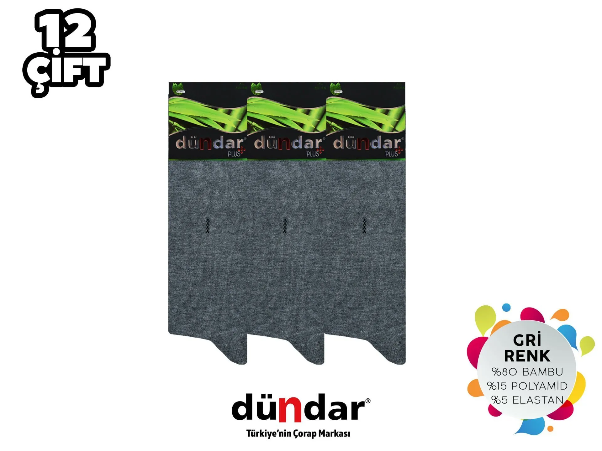 Dündar Dikişsiz Yıkamalı Kokulu Erkek Likralı Bambu Çorap 12'li,