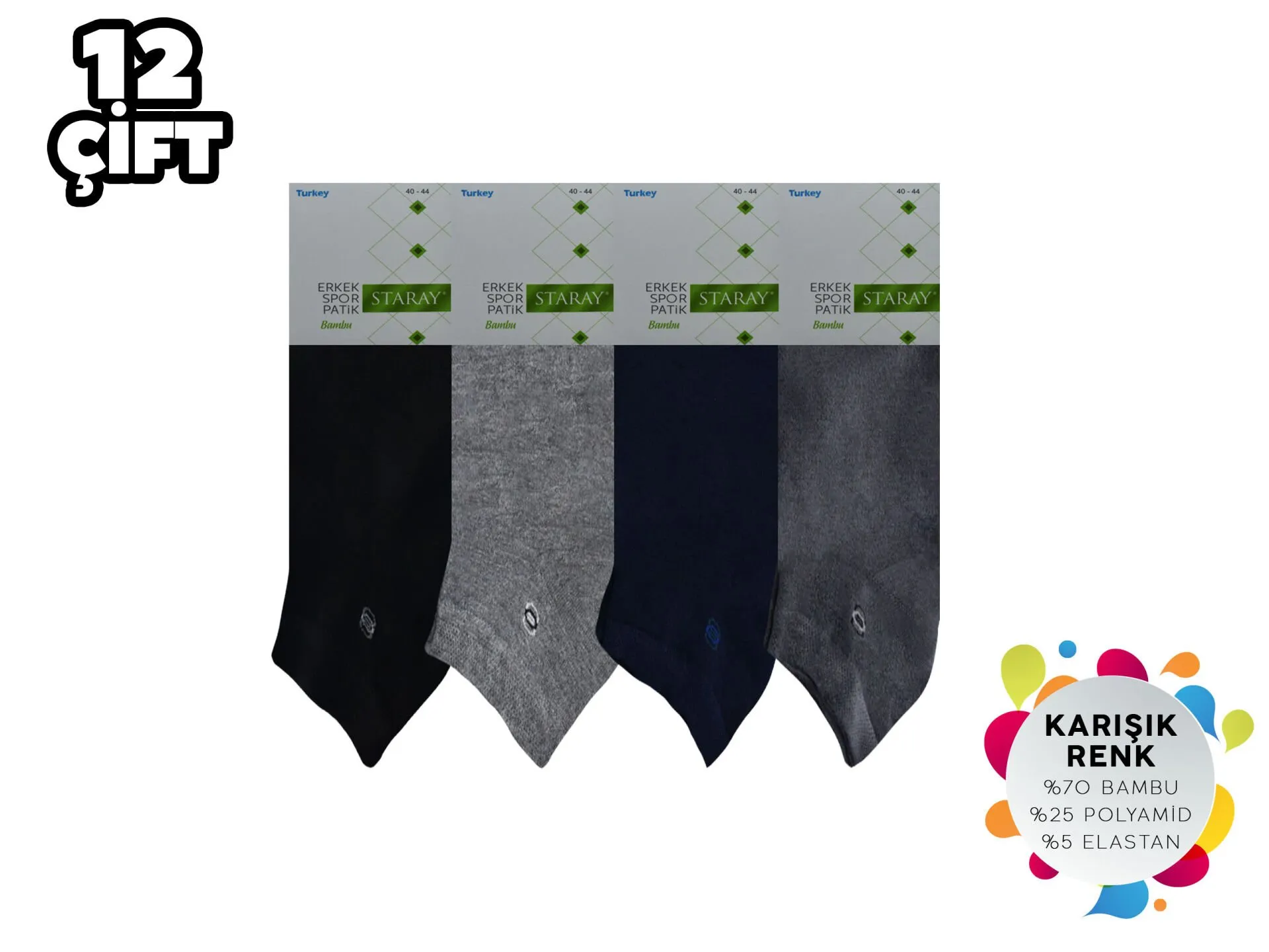 Staray 0524. Dikişsiz Bambu Erkek Patik 12'li,